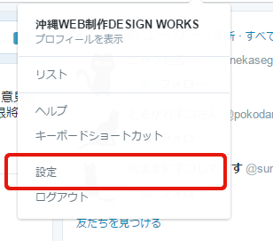 ログインしたら右上の自分のアイコンのマークをクリックして、メニューを開きます。