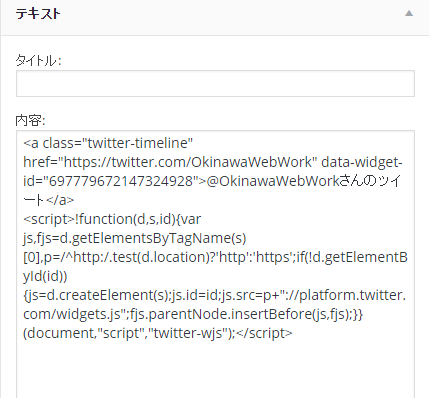 そうするとウィジェット一覧ができますので、テキストを表示させたいサイドバーに埋め込みます。