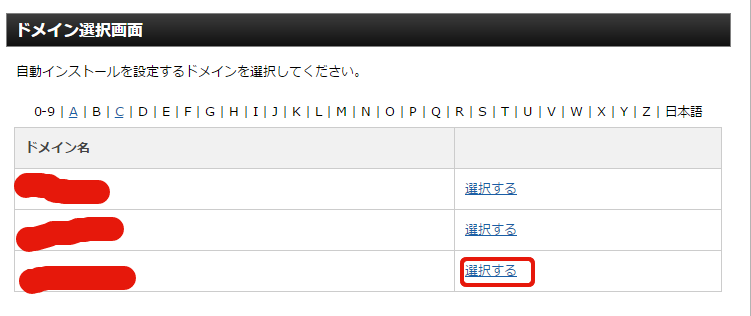 ドメインの選択画面になるので、インストールしたいドメインを選びます。