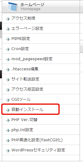 ログイン後真ん中下に自動インストールという項目があるので、これをクリックします。