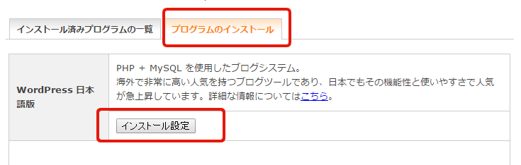 WordPress日本語というところで、インストール設定をクリックします。